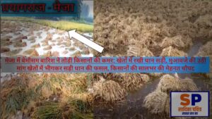 प्रयागराज | मेजा :- प्रयागराज जिले के मेजा क्षेत्र में बेमौसम हुई बारिश ने किसानों की उम्मीदों पर पानी फेर दिया है। मंगलवार, बुधवार और शुक्रवार को लगातार हुई वर्षा से खेतों में रखी कटी हुई धान की फसल पूरी तरह भीग गई, जिससे किसानों को भारी आर्थिक नुकसान झेलना पड़ा है।